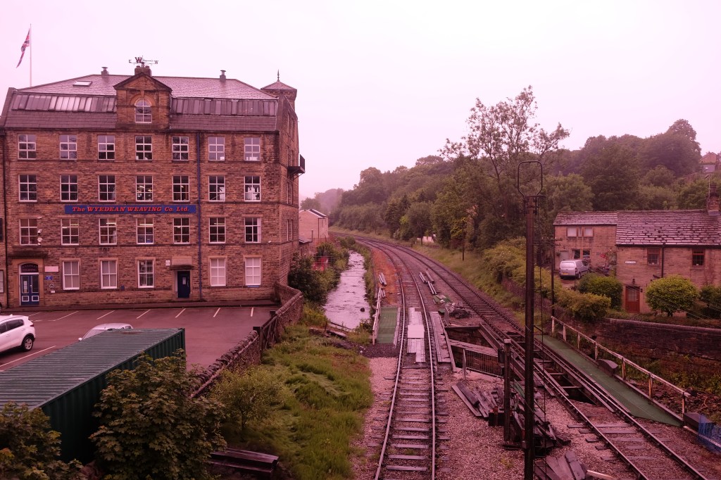 Ebor mill after fire, and wanders around the village, including a visit from the Flying Scotsman